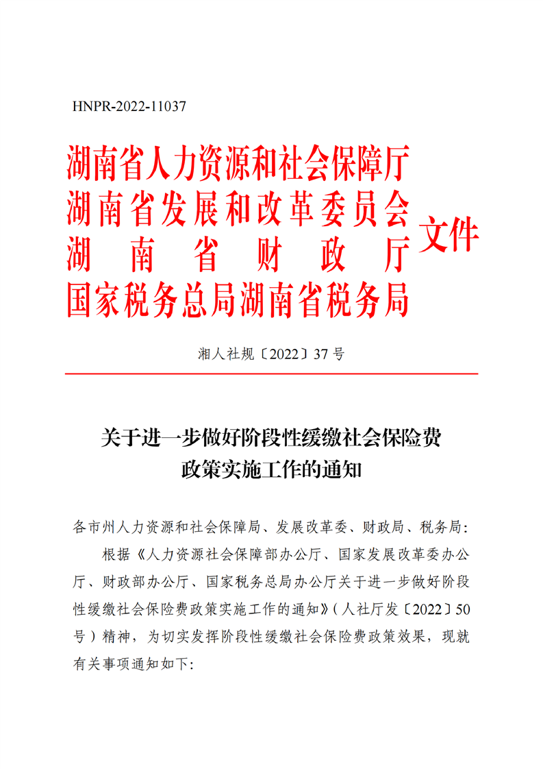 湖南印發(fā)《關(guān)于進一步做好階段性緩繳社會保險費政策實施工作有關(guān)問題的通知》