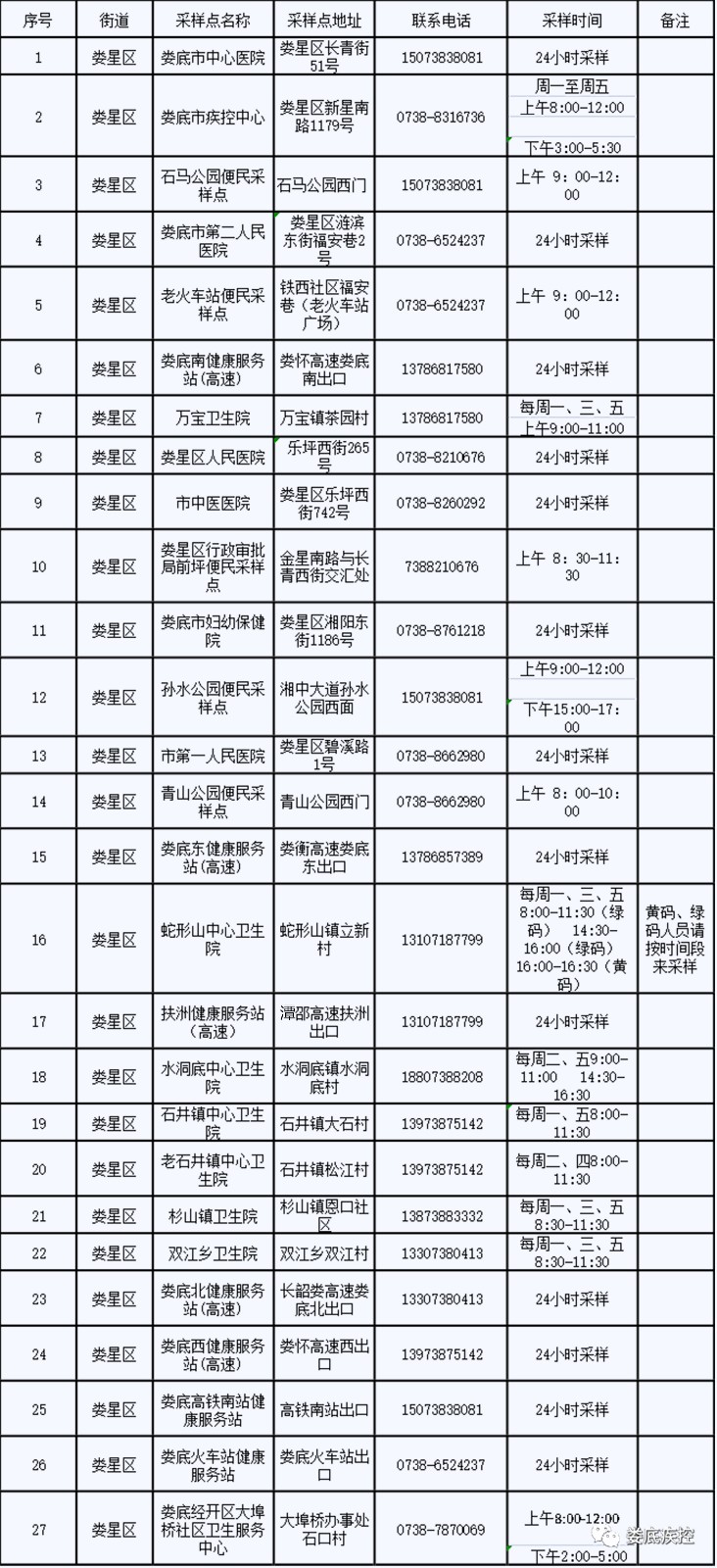 婁底市常態(tài)化核酸檢測采樣點(diǎn)信息公布一覽表