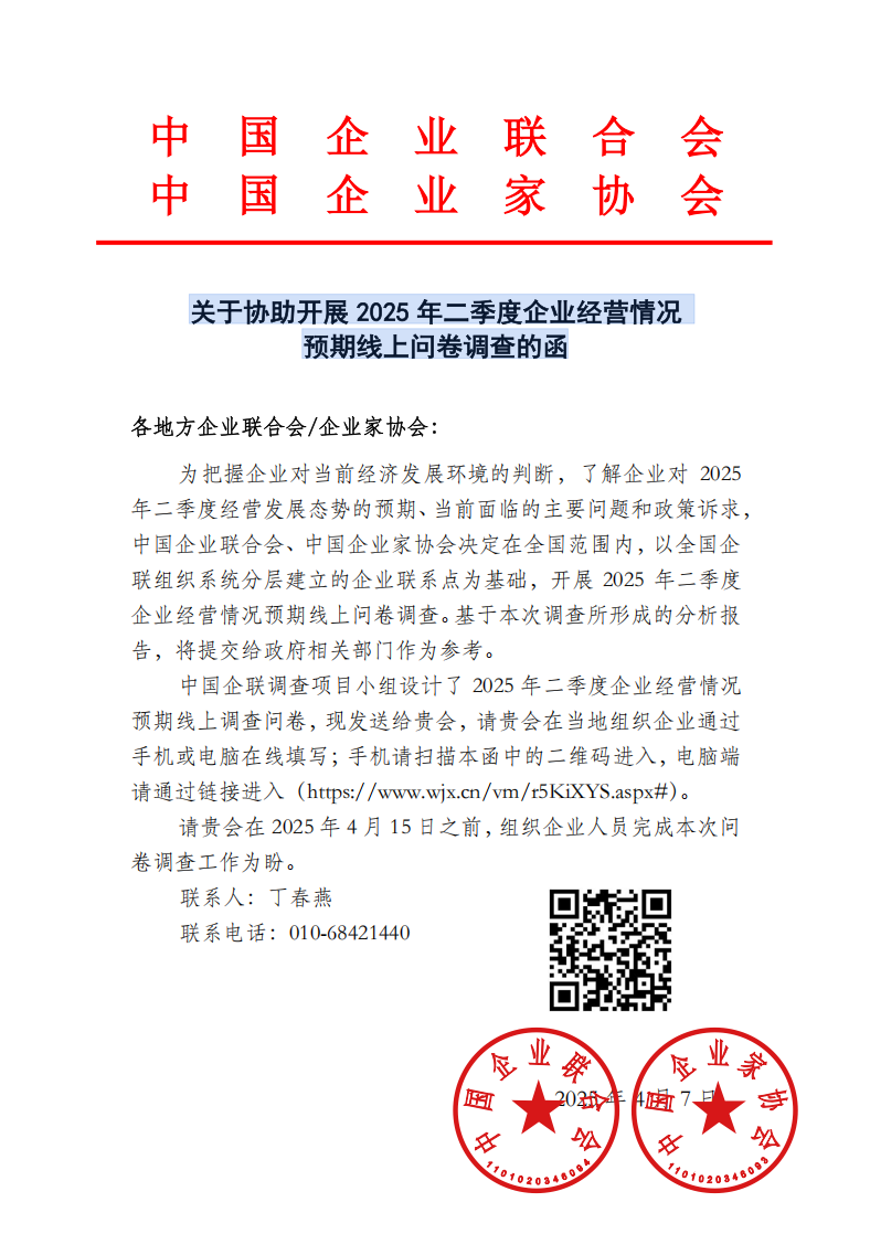 關(guān)于協(xié)助開展2025年二季度企業(yè)經(jīng)營(yíng)情況預(yù)期線上問卷調(diào)查的函