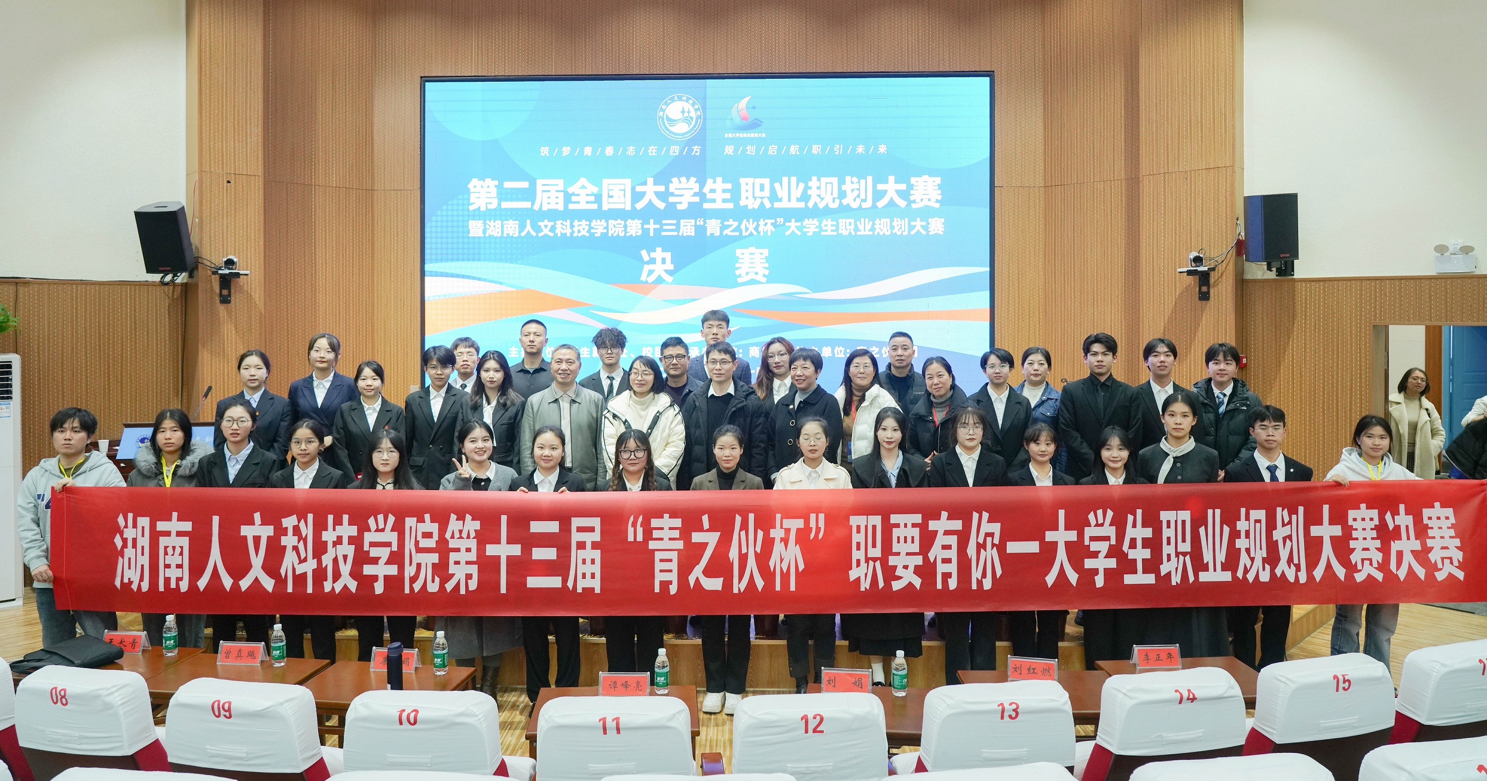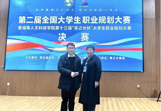 為貫徹落實黨中央、國務院關于高校畢業(yè)生就業(yè)工作的決策部署,加強高校就業(yè)指導,增強大學生生涯規(guī)劃意識,促進高校畢業(yè)生高質量充分就業(yè)。12月10日,第二屆全國大學生職業(yè)規(guī)劃大賽暨湖南人文科技學院第十三屆“青之伙杯”職要有你——大學生職業(yè)規(guī)劃大賽在湖南人文科技學院匠成樓報告廳舉行。校黨委委員、副校長譚峰亮、婁底市人力資源和社會保障局就業(yè)服務中心創(chuàng)業(yè)服務部部長康杜娟、婁底市企業(yè)聯(lián)合會副秘書長兼校企合作宣傳部部長劉娟、創(chuàng)新創(chuàng)業(yè)指導中心黨支部書記曾真飚、招生就業(yè)處處長劉紅燃出席并頒獎,參加活動的還有利通磁電、市節(jié)能環(huán)保產業(yè)促進中心、湘輝智匯人力資源和洪申科技等企業(yè)負責人。