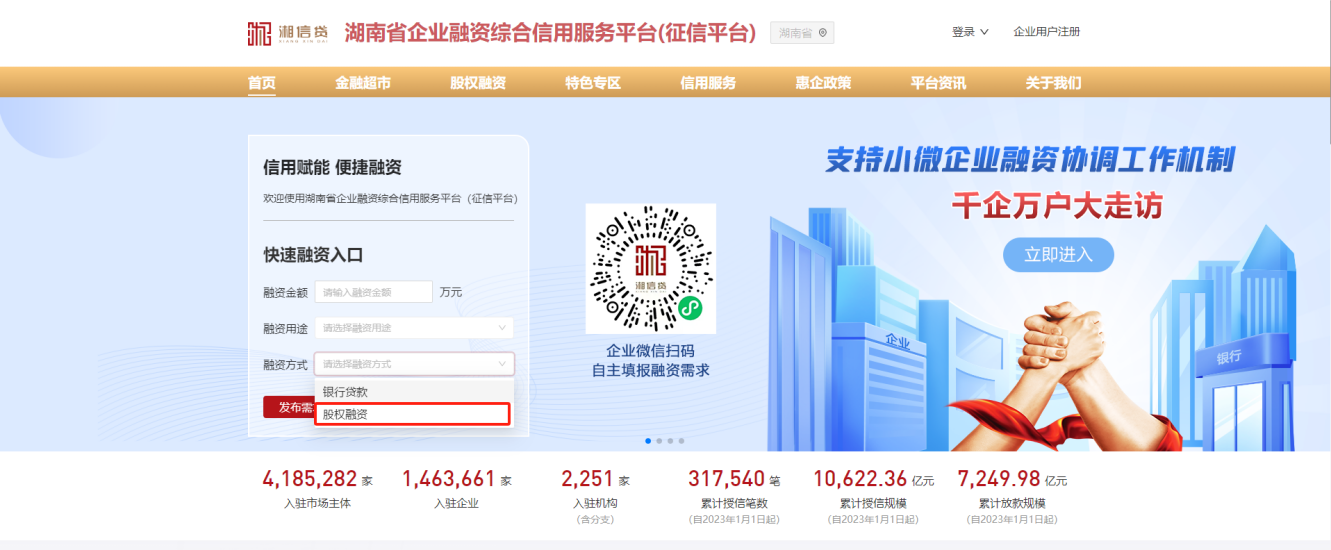 “湘信貸”平臺股權(quán)融資需求提交操作指引