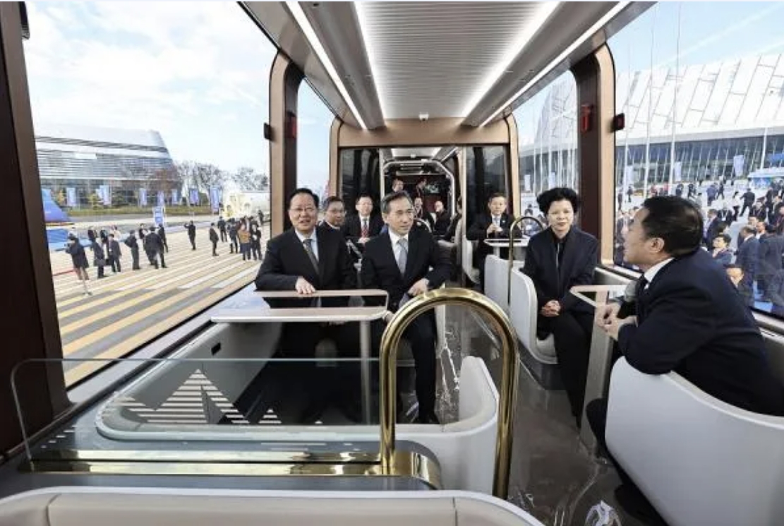 軌道交通博覽會(huì)期間,省長毛偉明,中國國際貿(mào)易促進(jìn)會(huì)會(huì)長、黨組書記任鴻斌一行試乘中車新研發(fā)的雪山旅列。